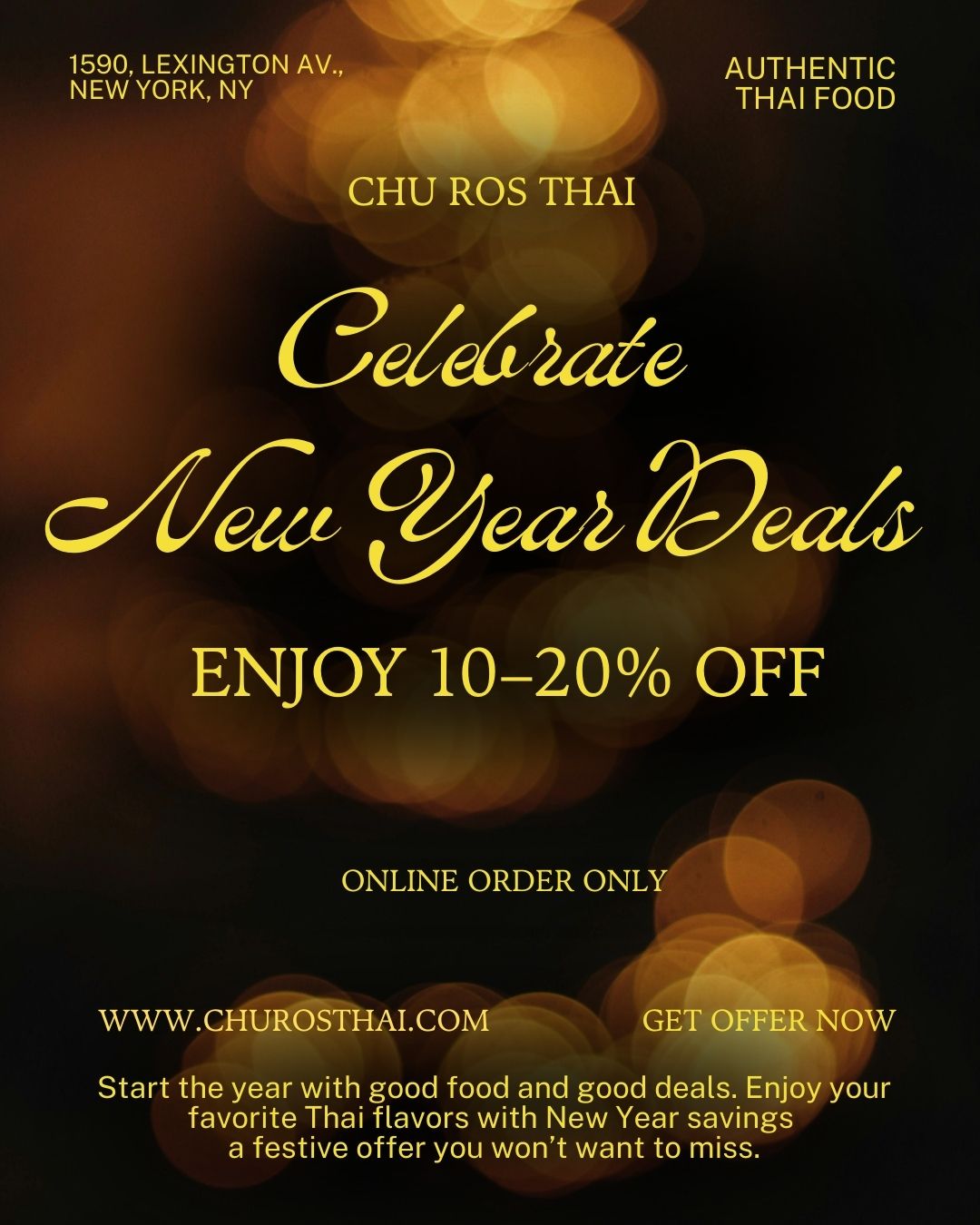 Chu Ros Thai is proud to be among the delicious and diverse flavors serving the East Harlem Community. Offering authentic Thai street food and comfort food classics, the Chu Ros team is committed to bringing fresh ingredients and original recipes straight from their hometowns in Thailand to our customers.